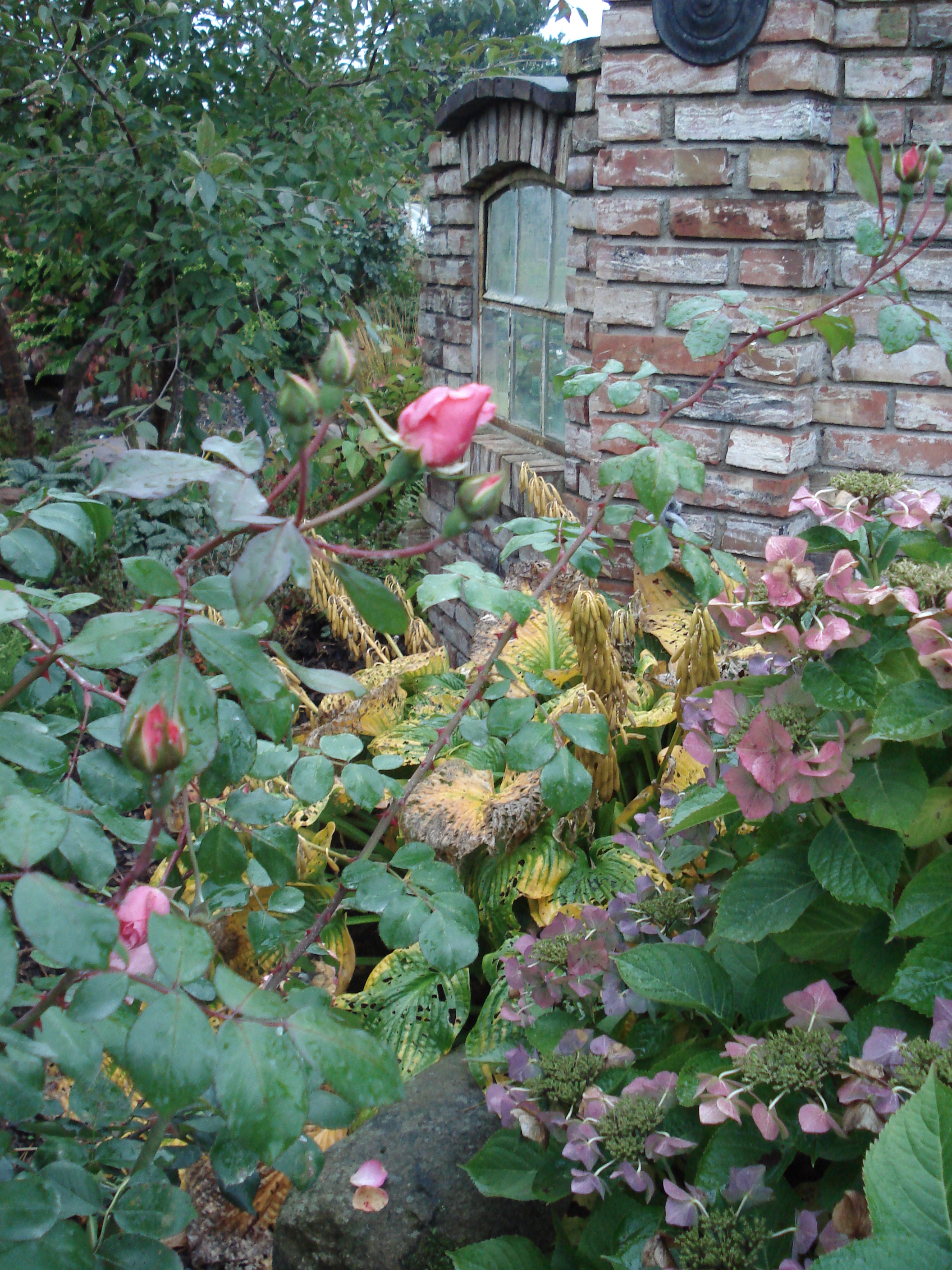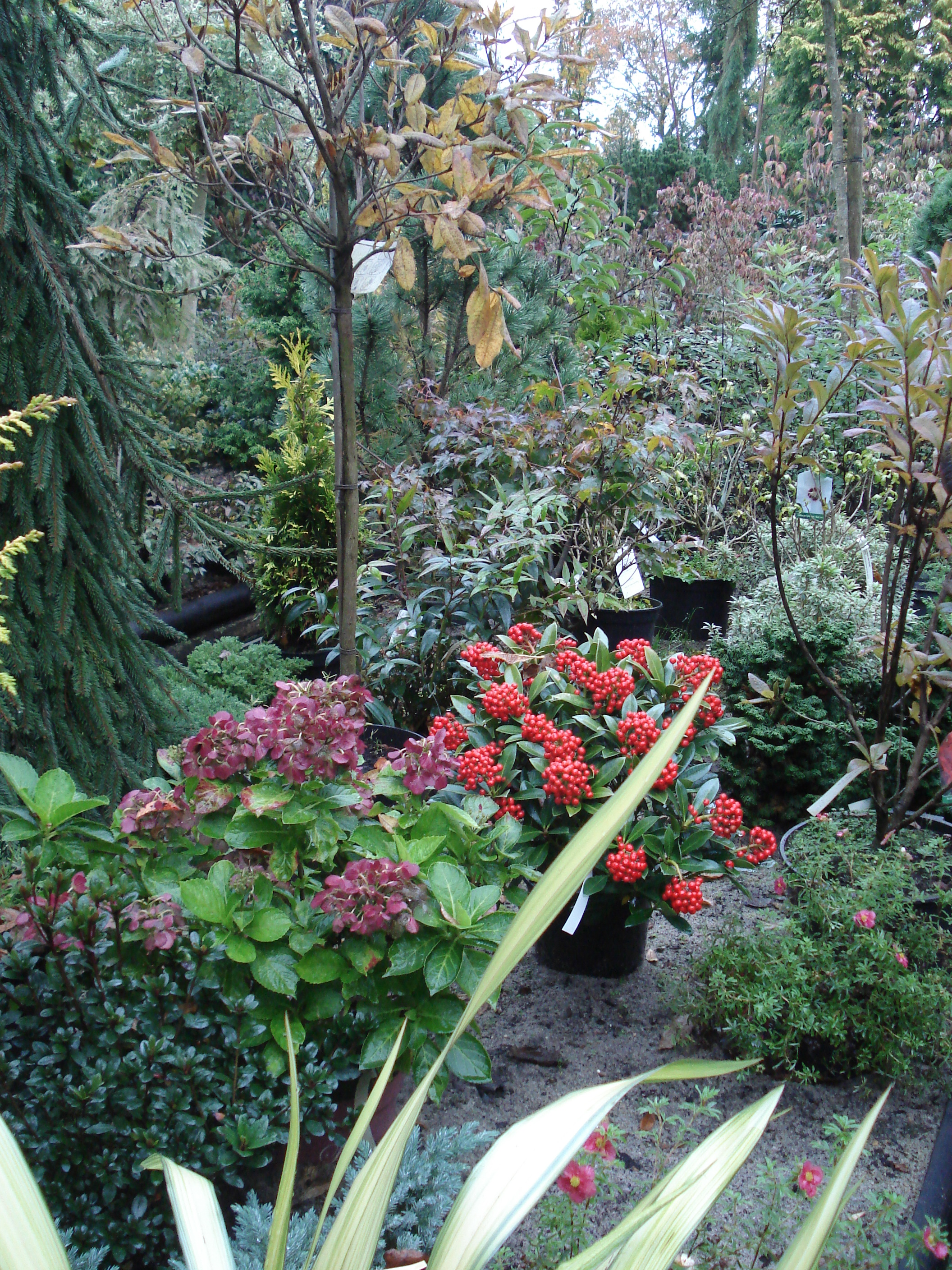 Euonymus alatus Compacta auf Stamm und Hydrangea paniculata Pinky Winky