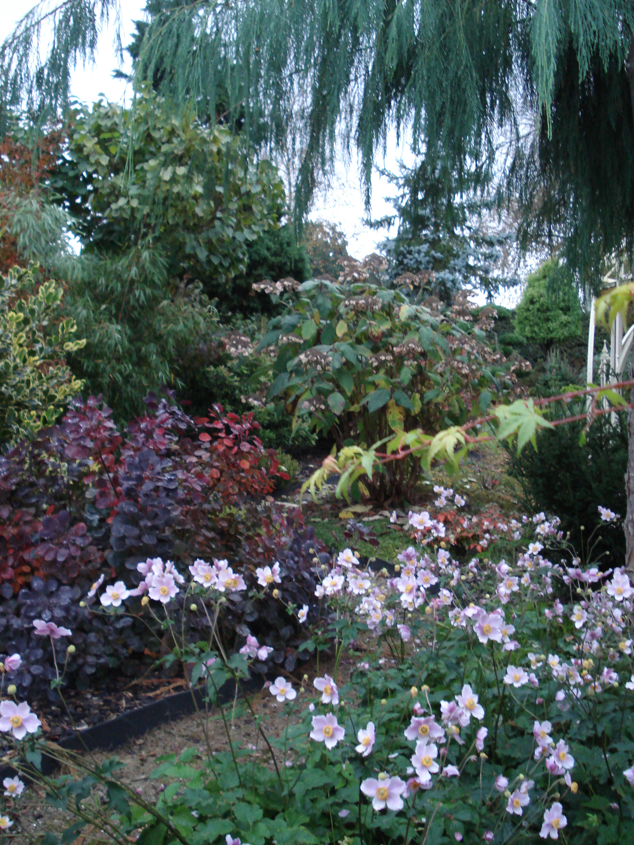 Anemone hupehensis Septembercharme, dahinter Cotinus coggygria Lilla